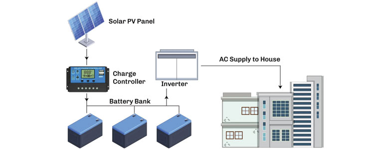 A solar off-grid system is a type of solar system that is not connected to the local grid. It allows you to generate and store electricity using solar panels, batteries, a charge controller, and an inverter. A solar off-grid system can provide you with clean, renewable energy and independence from the grid.